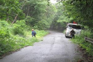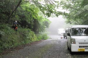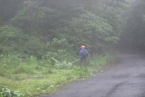 未明の雨の影響ですぐそこはもやでかすんでいます