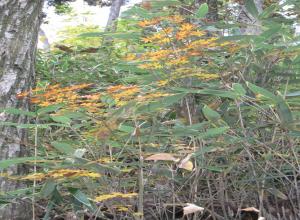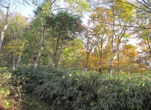 頂上近くのクマザサと紅葉