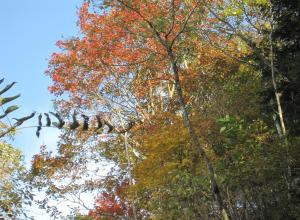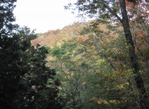 木々の間から見る尾根の紅葉