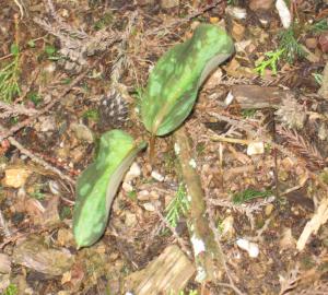 令和6年カタクリの花の葉っぱはあり ました 花は咲いていませんでした 葉っぱが2枚あると花は咲くそうです 一枚の葉では花は咲かないそうです |