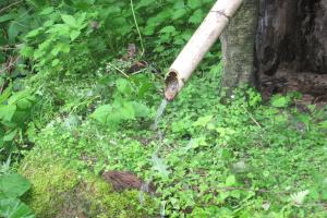 ミツバアケビの花 太い幹を巻いている ツルについている見えないくらい小さい花 | ||||||||